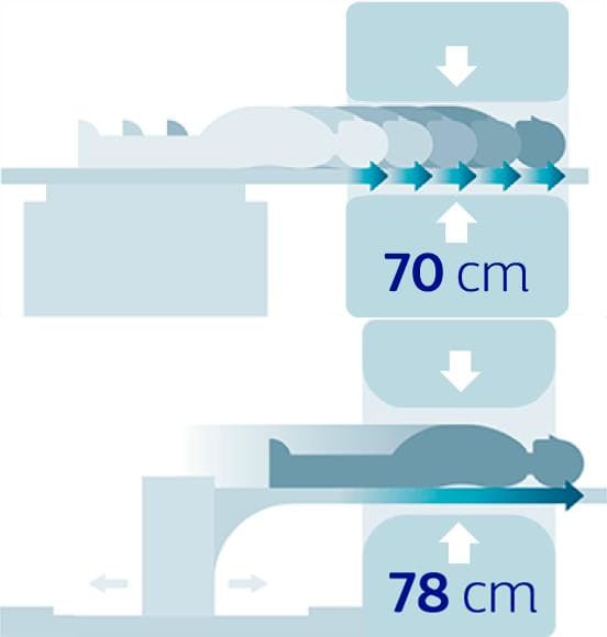 - Más confort para todos los pacientes: Diámetro de 78 cm que brinda comodidad y reduce la sensación de encierro, mejorando la experiencia durante la exploración.