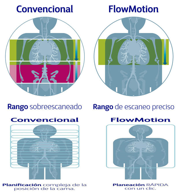 - Detalles finos en las imágenes de cada órgano: La tecnología FlowMotion permite protocolos personalizados para cada región, ofreciendo los mejores detalles y un diagnóstico más seguro.
